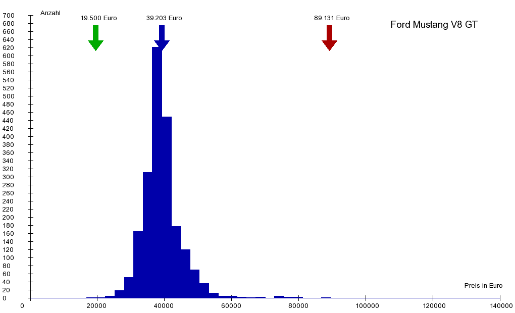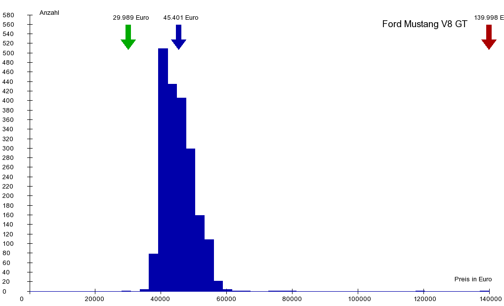 Verteilung der Angebotspreise mit preiswertestem, durchschnittlichem und teuerstem Preis. Zum Vergrößern auf die Abbildung klicken!