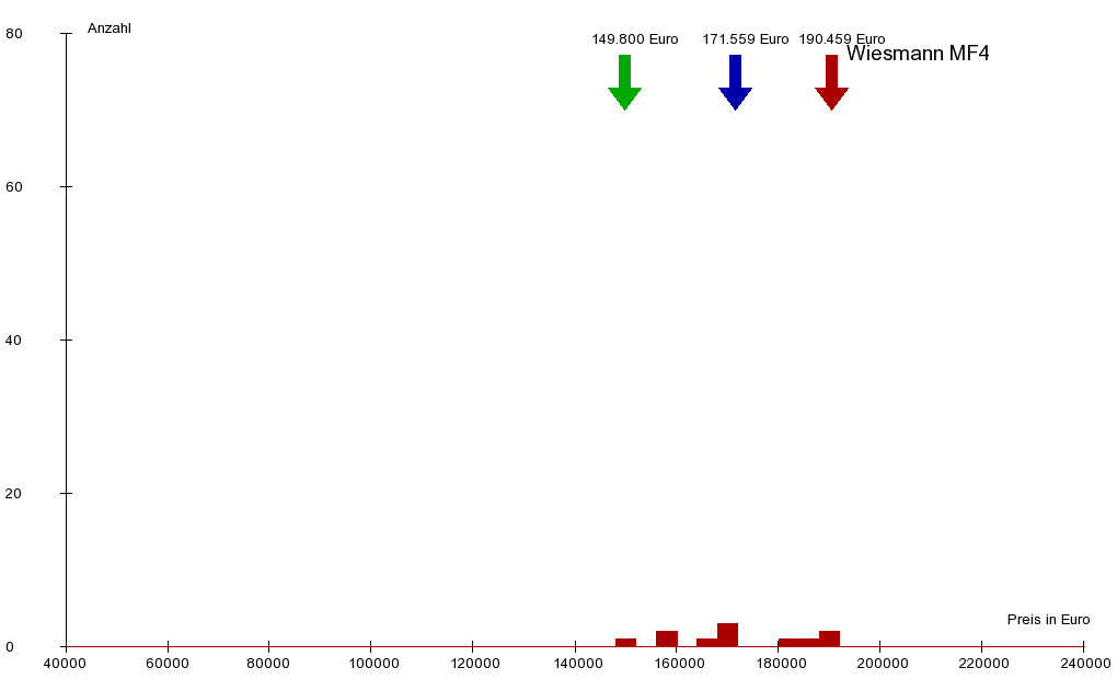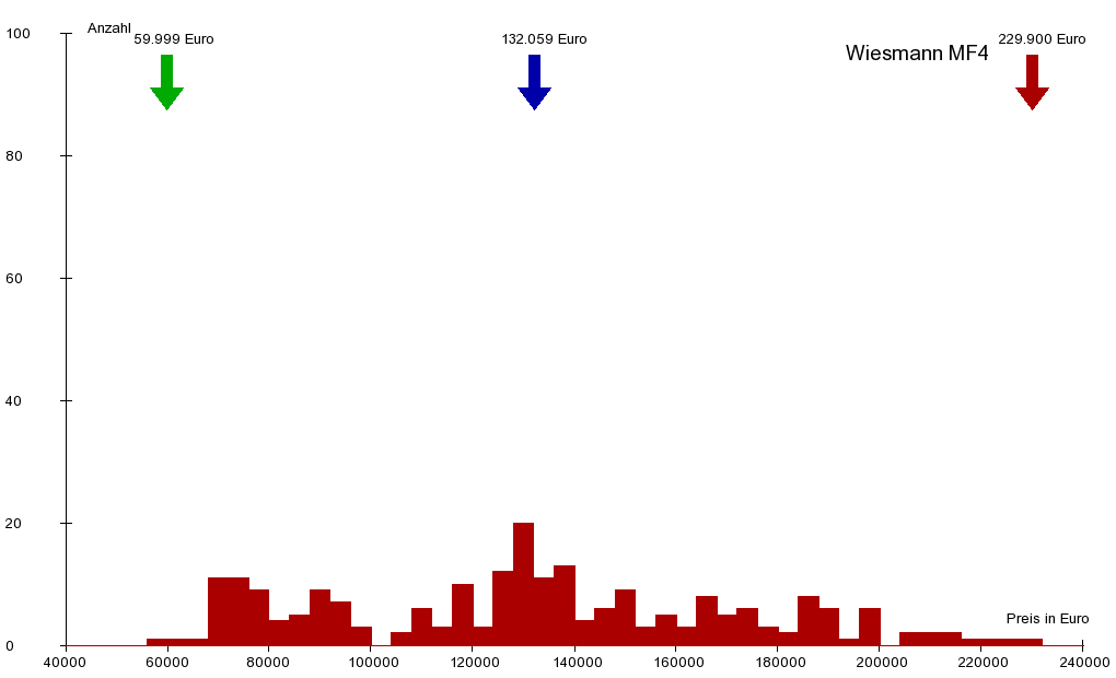 Davon wurde im Beobachtungszeitraum 1 Wagen verkauft. Die Preisspanne reicht von
